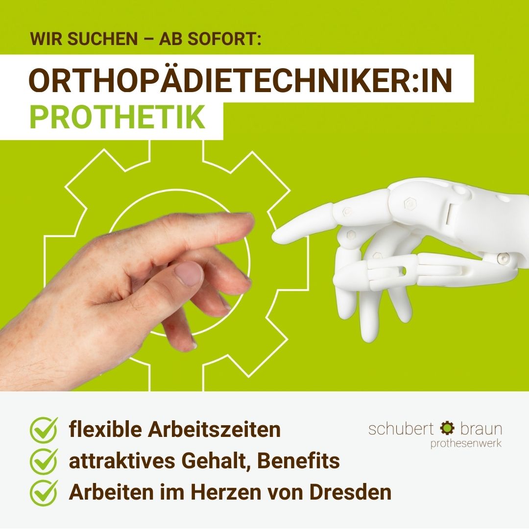 Als 𝐎𝐫𝐭𝐡𝐨𝐩ä𝐝𝐢𝐞𝐭𝐞𝐜𝐡𝐧𝐢𝐤𝐞𝐫:𝐢𝐧 (𝐦/𝐰/𝐝)) im Bereich 𝐏𝐫𝐨𝐭𝐡𝐞𝐭𝐢𝐤 bei der schubert und braun prothesenwerk gmbh hilfst du Menschen, ihr Leben besser zu meistern.